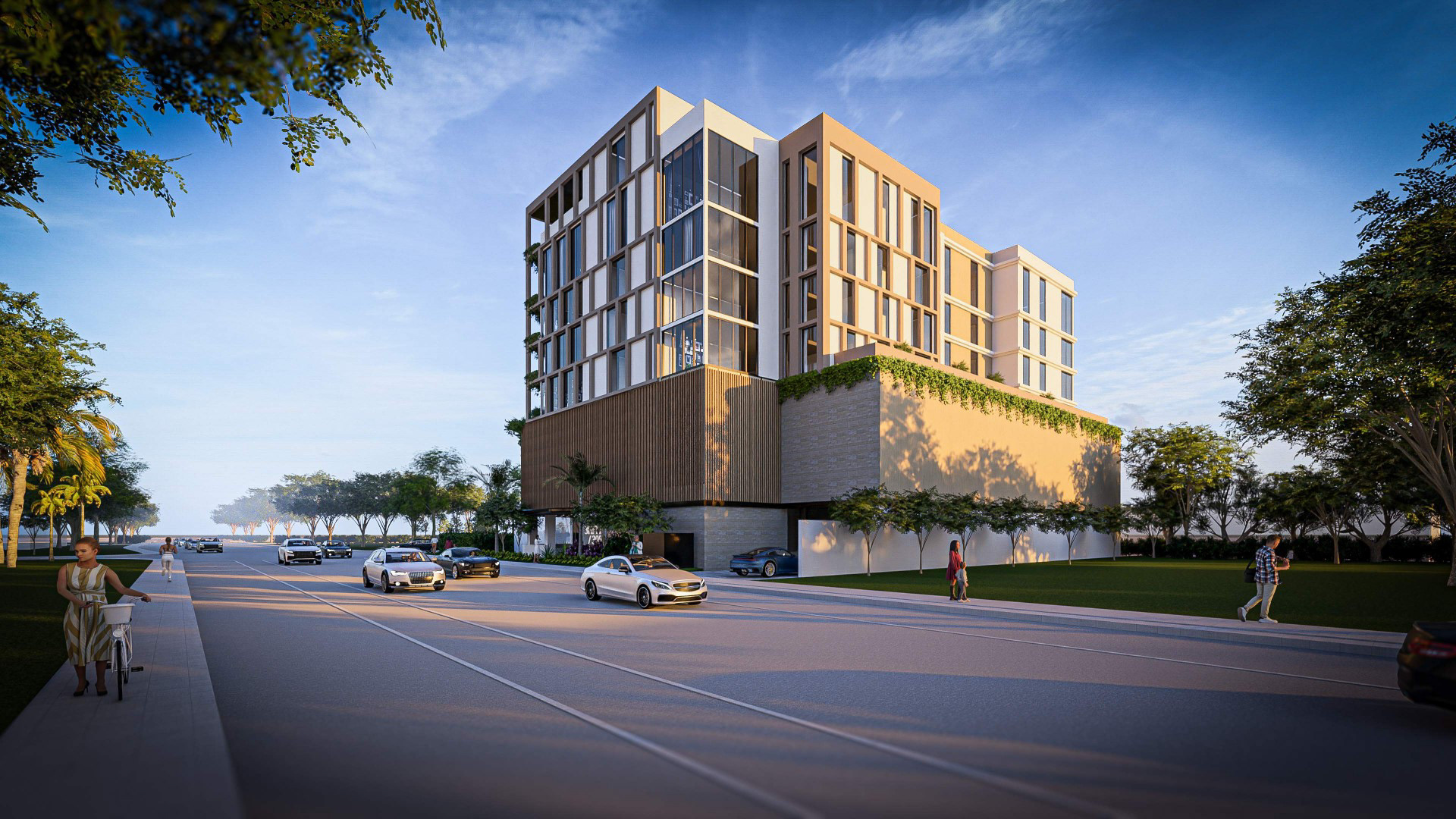 Miami, Florida The project consists of a 44 unit mid rise building on top of a screened parking garage, located in North Miami. The materials and color pallets were carefully chosen to integrate with the design in order to harmoniously blend with the South Florida context